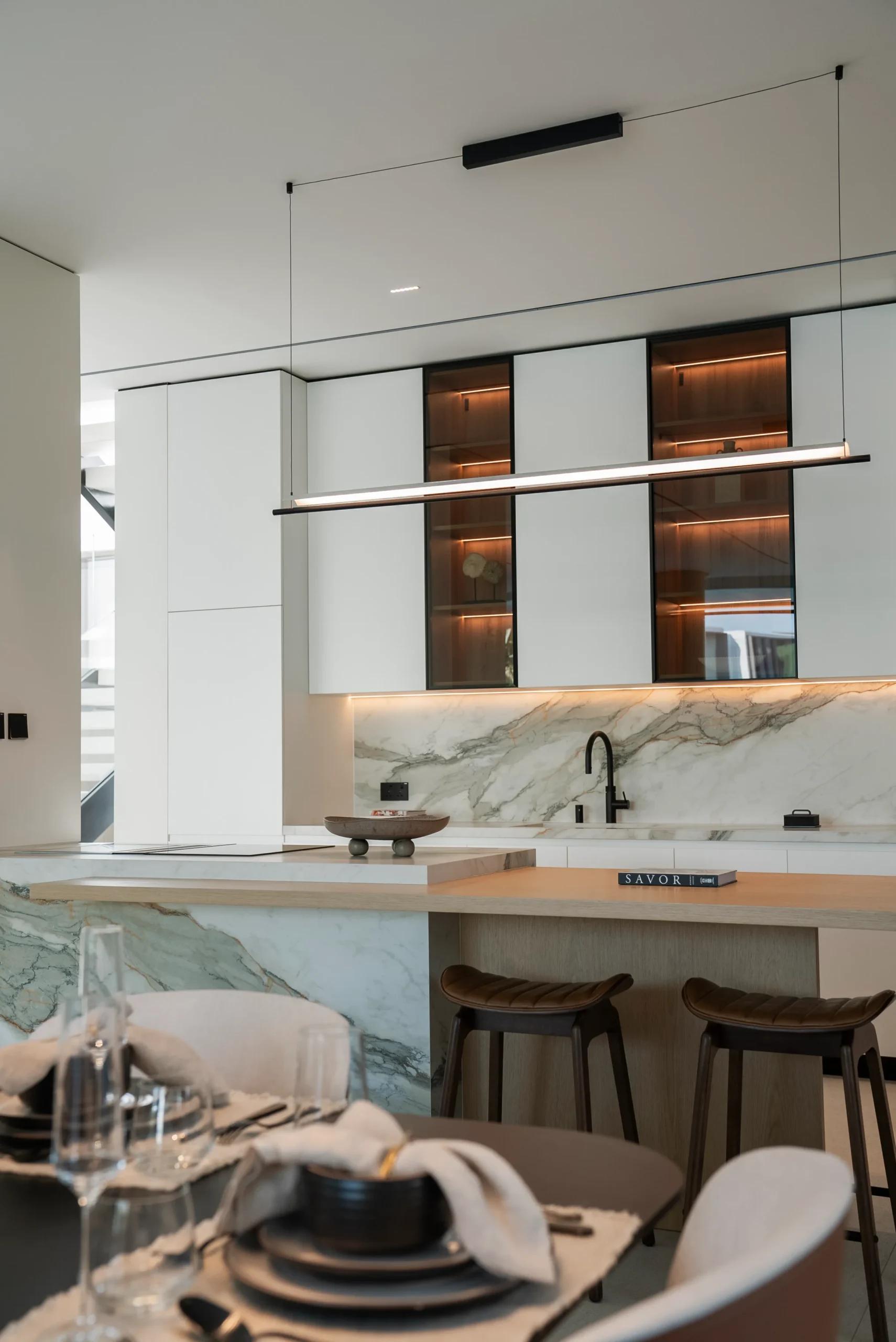 At Dzen Interior Architects, we crafted the design for Fairways 191, focusing on both interior and exterior elements. Our approach merges sophisticated aesthetics with functional design, creating a cohesive and elegant environment that flows effortlessly from inside to outside.