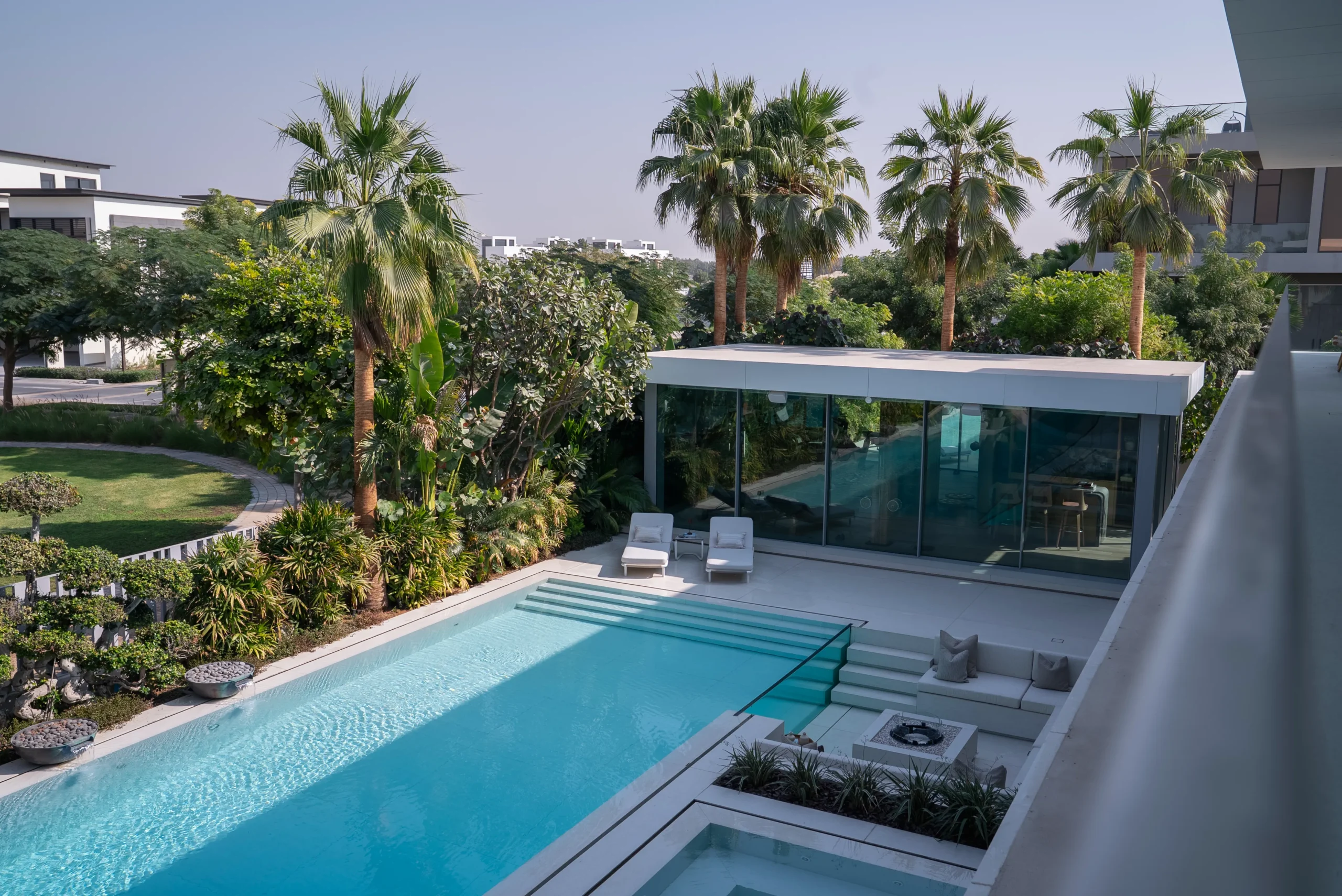 Creating a seamless transition between interior and exterior spaces while maintaining a consistent design theme. Balancing functionality with elegance in both indoor and outdoor areas. Integrating high-quality materials and finishes that provide durability and visual appeal.